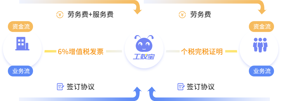 共享經濟下,工蟻寶作為用工智能撮合平臺,完成發(fā)包、接單、執(zhí)行、審核、結算、報稅等一體化管理。 企業(yè)通過工蟻寶平臺發(fā)包(發(fā)任務),靈工通過平臺接包(接任務),建立起業(yè)務合作關系;企業(yè)通過平臺支付靈工的費用,并拿到增值稅專票;然后平臺代扣代繳個稅后,給靈工發(fā)放費用;最終做到合同流、業(yè)務流、資金流、票據流,四流一致,合理合規(guī)降低企業(yè)成本。